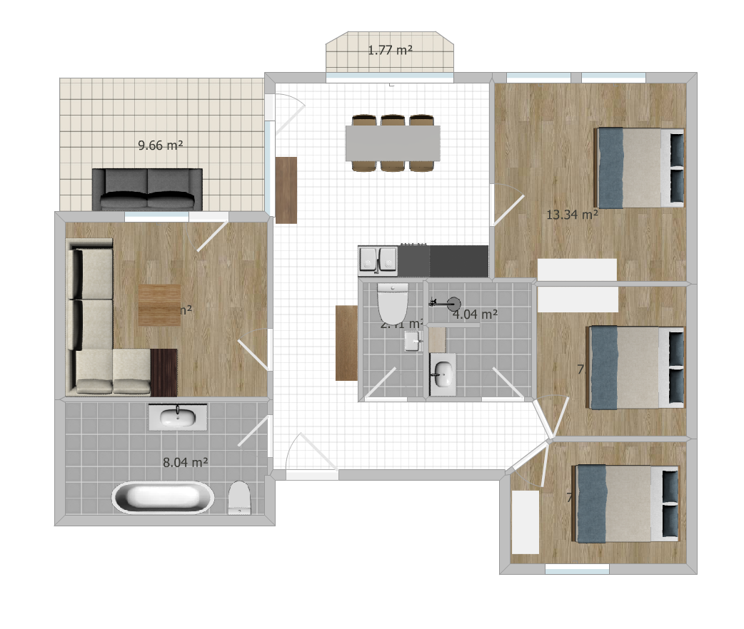 Die Ferienwohnung „Roter Schrofen“ befindet sich im Dachgeschoss des Hauses und ist über eine Treppe erreichbar. Die ca. 90 Quadratmeter große Wohnung verfügt über: